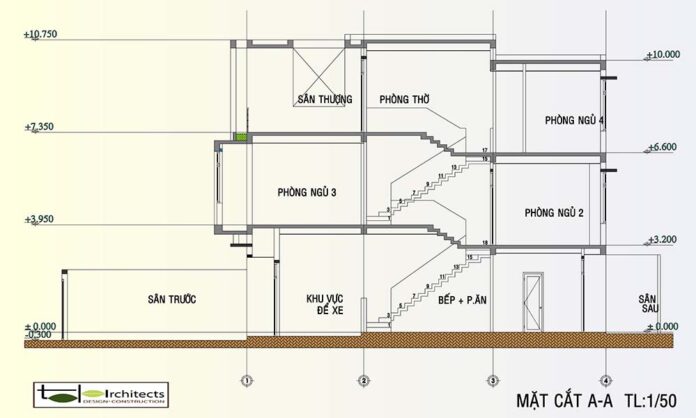 Bản chất của những ngôi nhà lệch tầng là chúng có độ chênh cốt giữa các tầng. Với những lô đất có diện tích hẹp và dài, kết cấu lệch tầng sẽ là lựa chọn hợp lý hơn cả, có thể tận dụng sự  thông tầng với không gian cầu thang, tạo độ thông thoáng và ánh sáng cho trung tâm căn nhà.