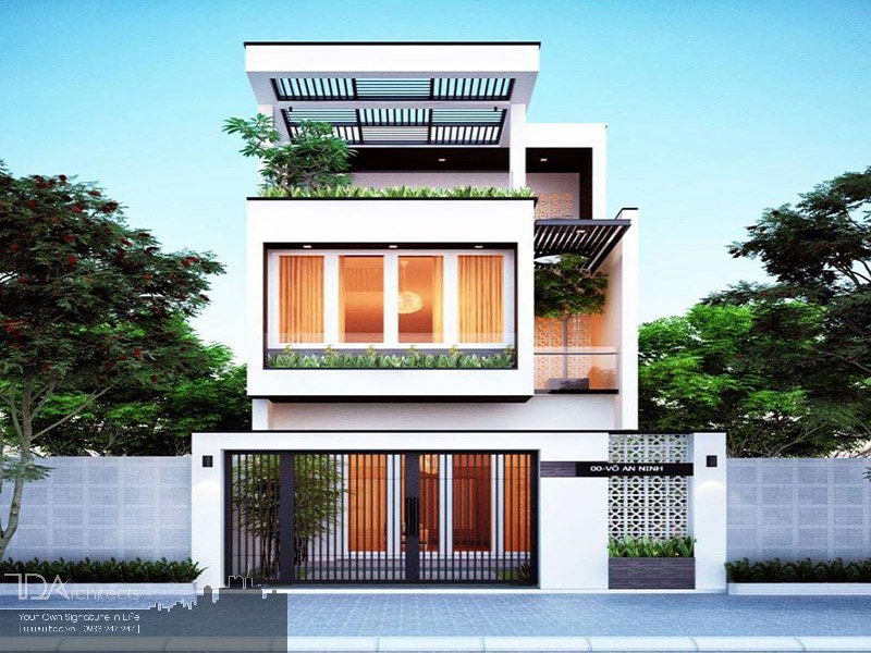 Mẫu thiết kế nhà 3 tầng mặt tiền đa phần được thiết theo phong cách hiện đại, tân cổ điển cũng có nhưng khá ít. Cách thiết kế hiện đại rất đơn giản nhưng tạo được sự chắc chắn và đem đến tổng thể phối cảnh cho căn nhà.