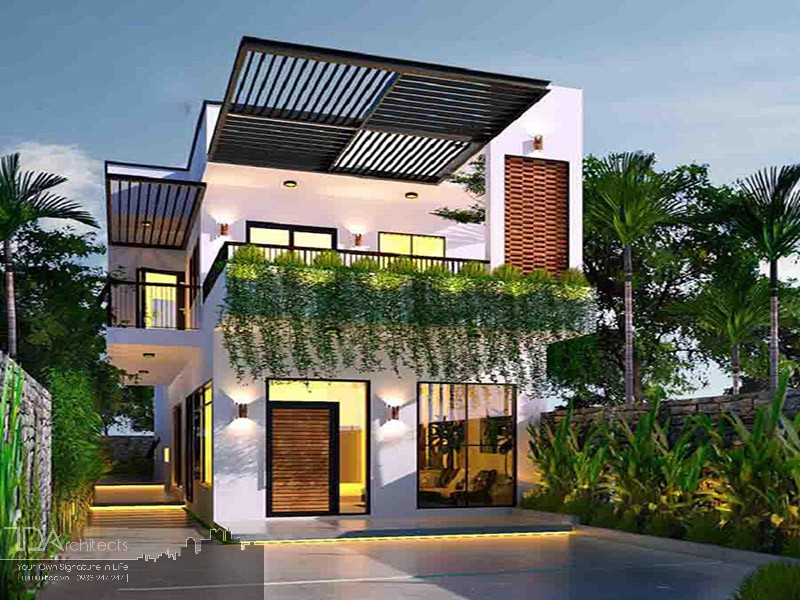 Với mẫu này sẽ được thiết kế 3 tầng mỗi tầng đều có ban công để đón gió và ánh sáng tự nhiên, mỗi không gian đều được trang trí với cỏ nhân tạo được không gian xanh mát hơn.